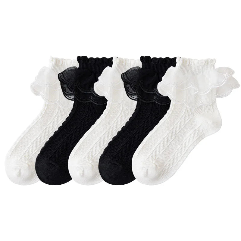 5 Pack Lace Ankle Socks (Black & White)