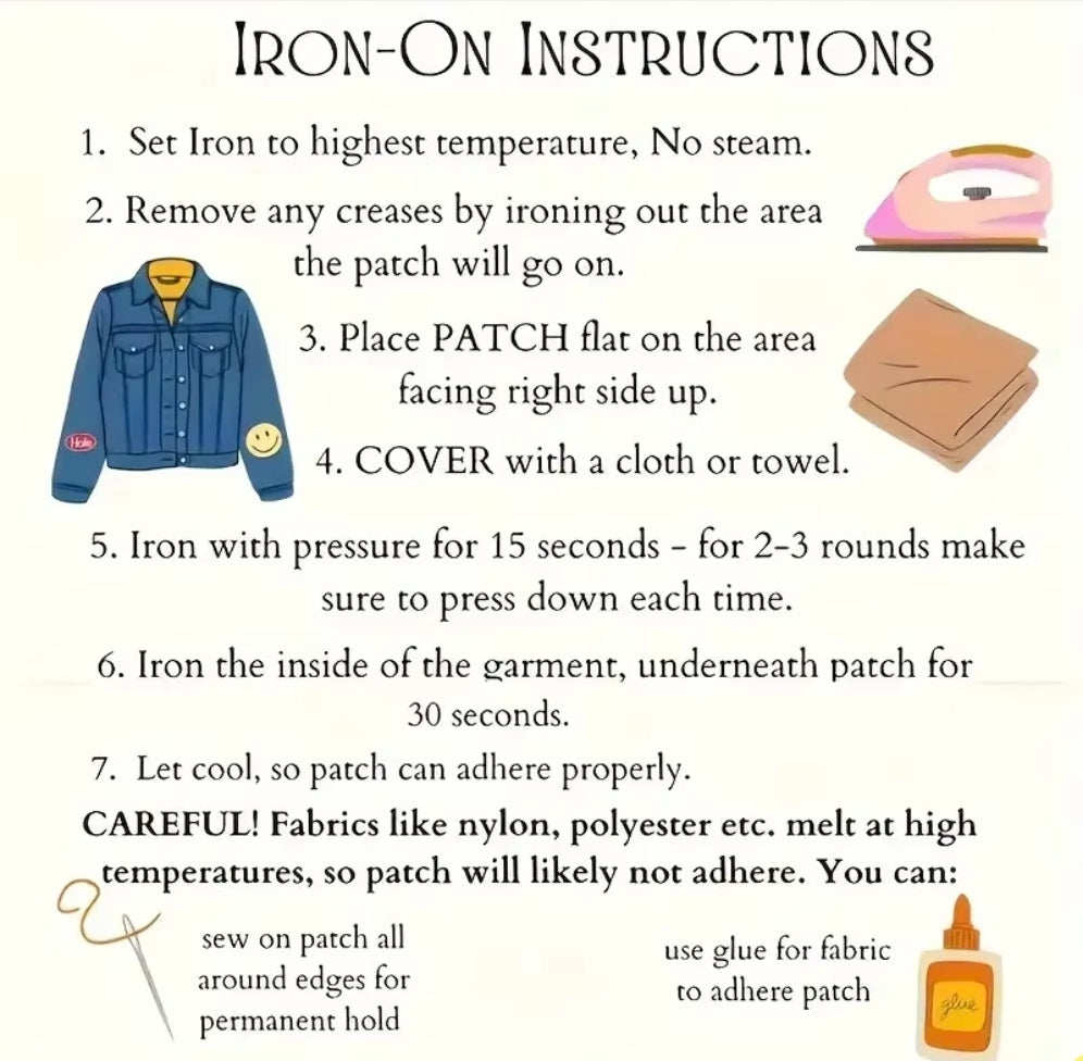- Place a cloth over the area and Iron over the patch for approximately 30 seconds.