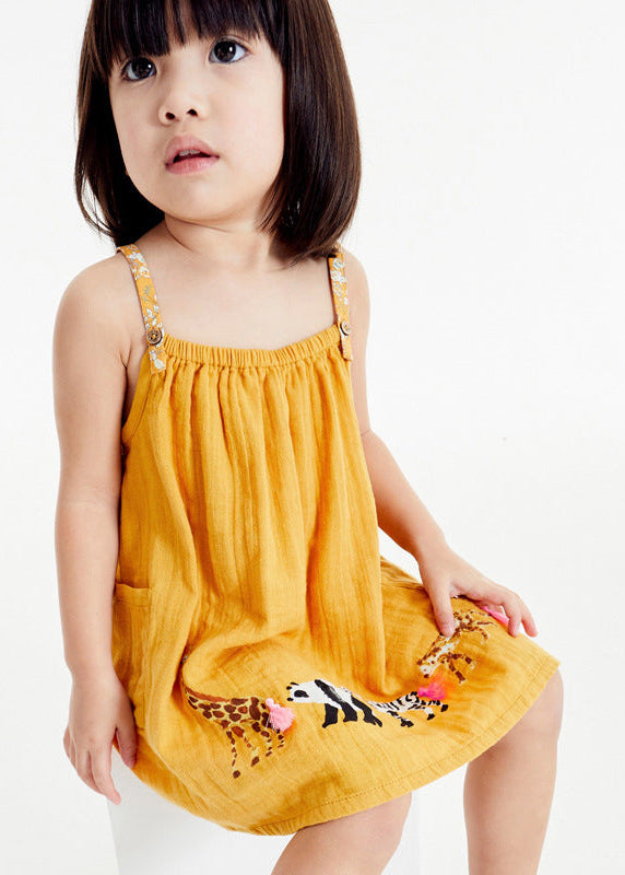 The Girls' Strappy Zoo Dress is made from soft, high-quality cotton for maximum comfort and breathability. Perfect for any occasion, this dress features delicate floral straps and a playful zoo print, making it both stylish and fun. Give your little one the gift of fashion and functionality with this must-have dress.