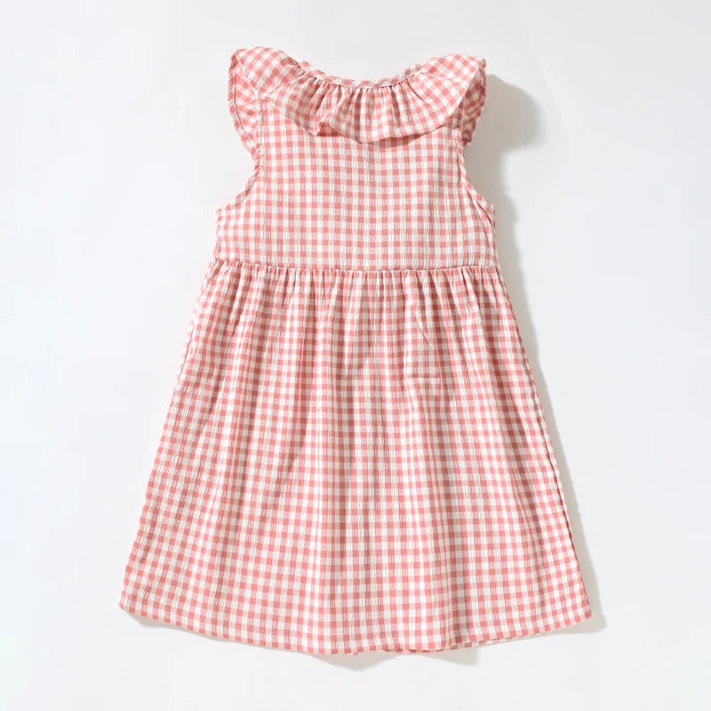Girls Sleeveless Dress in Mushroom Plaid Pink