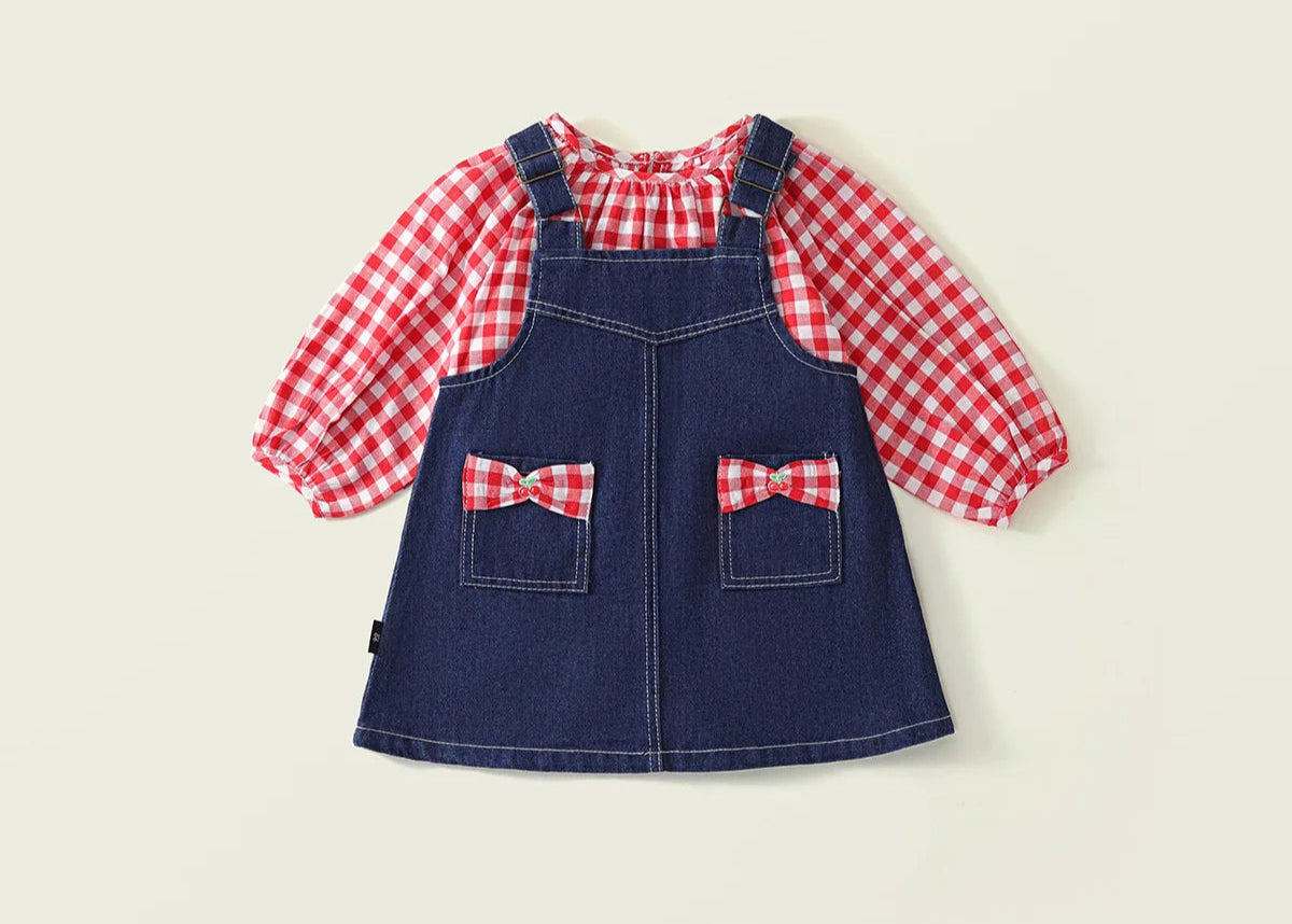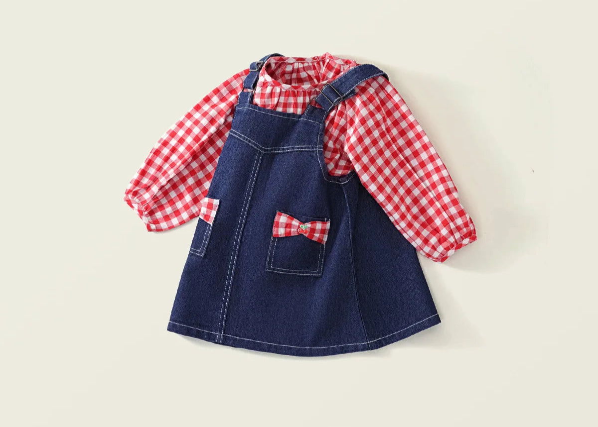 Get your little fashionista ready to take on the day with our Girls Denim Skirt set! Featuring a playful denim skirt and a bold red gingham shirt, this outfit will have her looking stylish and feeling comfortable. Perfect for any occasion, this set will surely become a staple in her wardrobe. (Oh, and did we mention how adorable she'll look?)