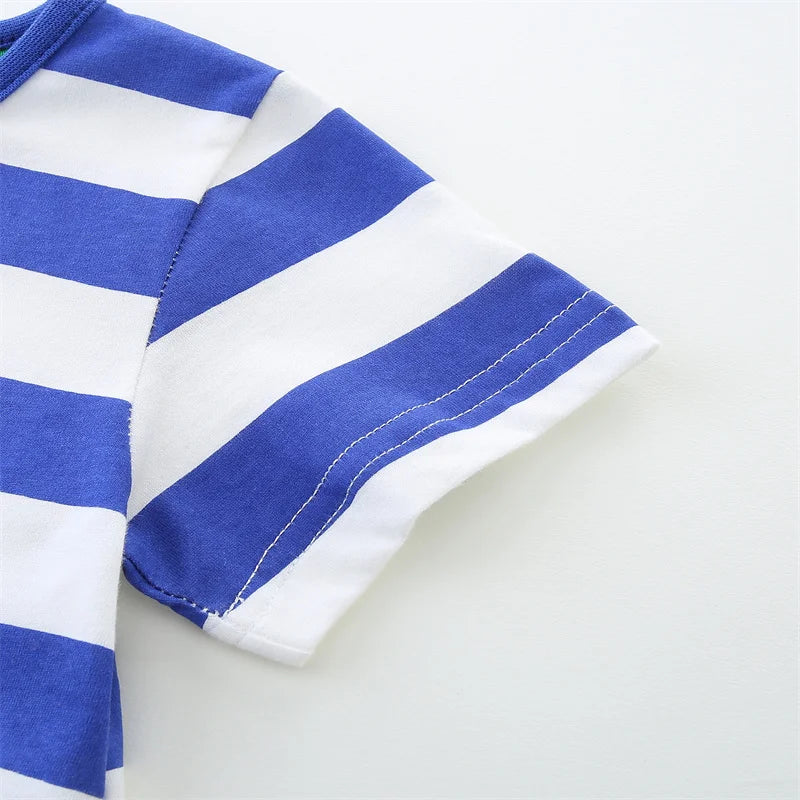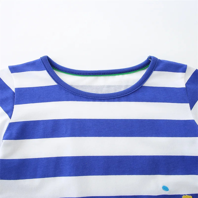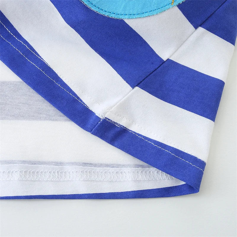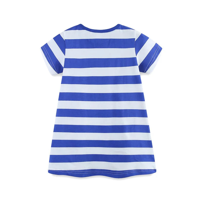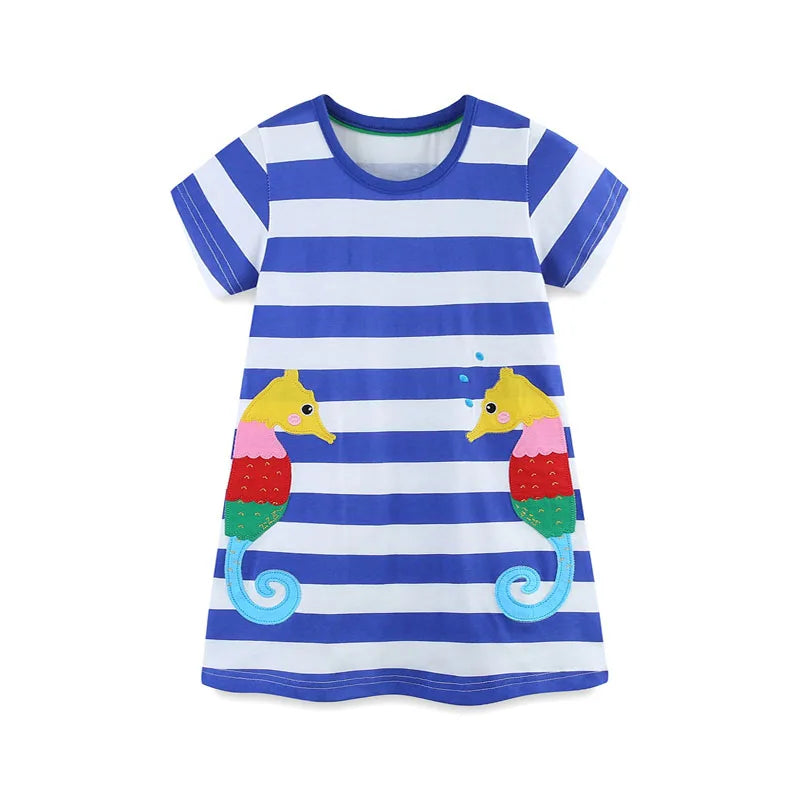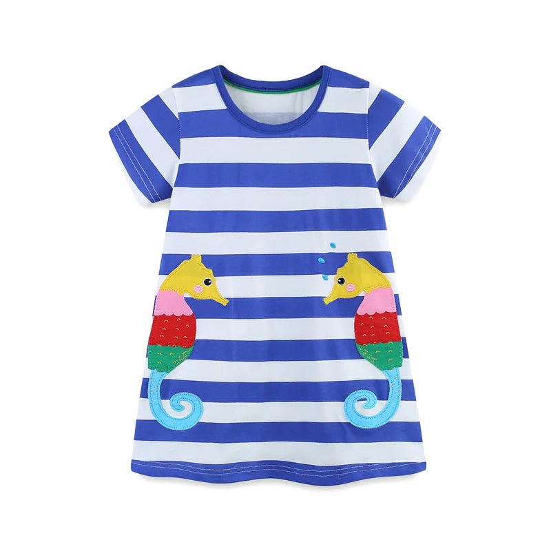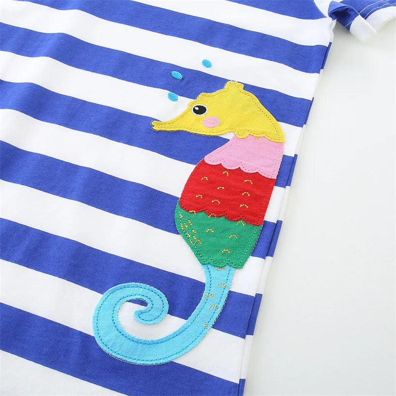Girls SS Striped Seahorse Applique Dress