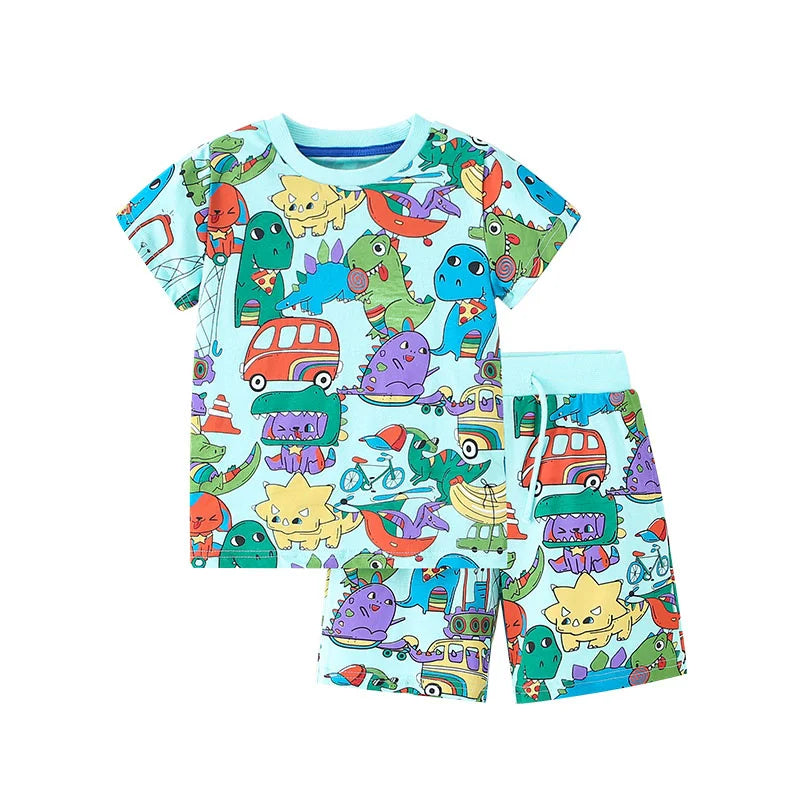 Get ready to roar with this one-of-a-kind Crazy Dino T Shirt and Shorts set! Featuring a playful print and comfy fit, this set is perfect for any dinosaur lover. Let your wild side shine with this unique and quirky outfit. (Rawr-some!)