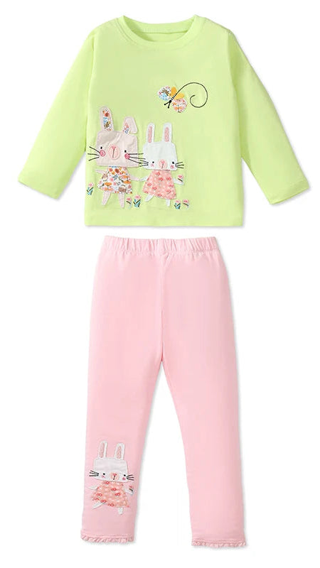 This adorable Girls LS T & Legging Set will have your little one hopping with joy! Featuring a playful green and pink bunny design, this set is both comfortable and stylish. The long-sleeved t-shirt and leggings are perfect for any day and will keep your child looking cute and feeling great.