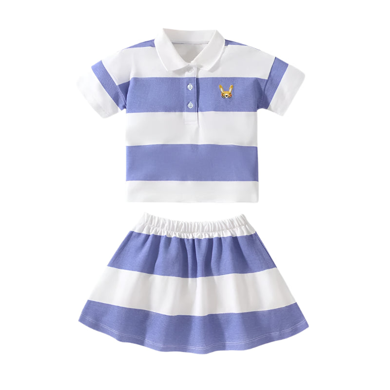 Stay stylish on the court with this Girls Tennis Polo + Skirt set. With its sporty design, you'll look and feel like a pro. Perfect for any match, this set combines style and function for the ultimate tennis experience. Game, set, match!