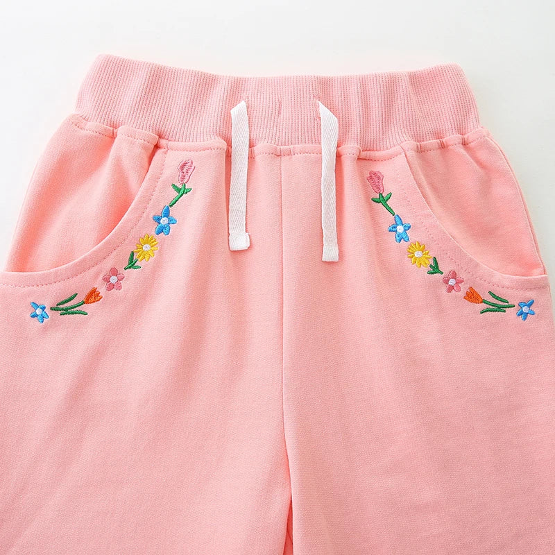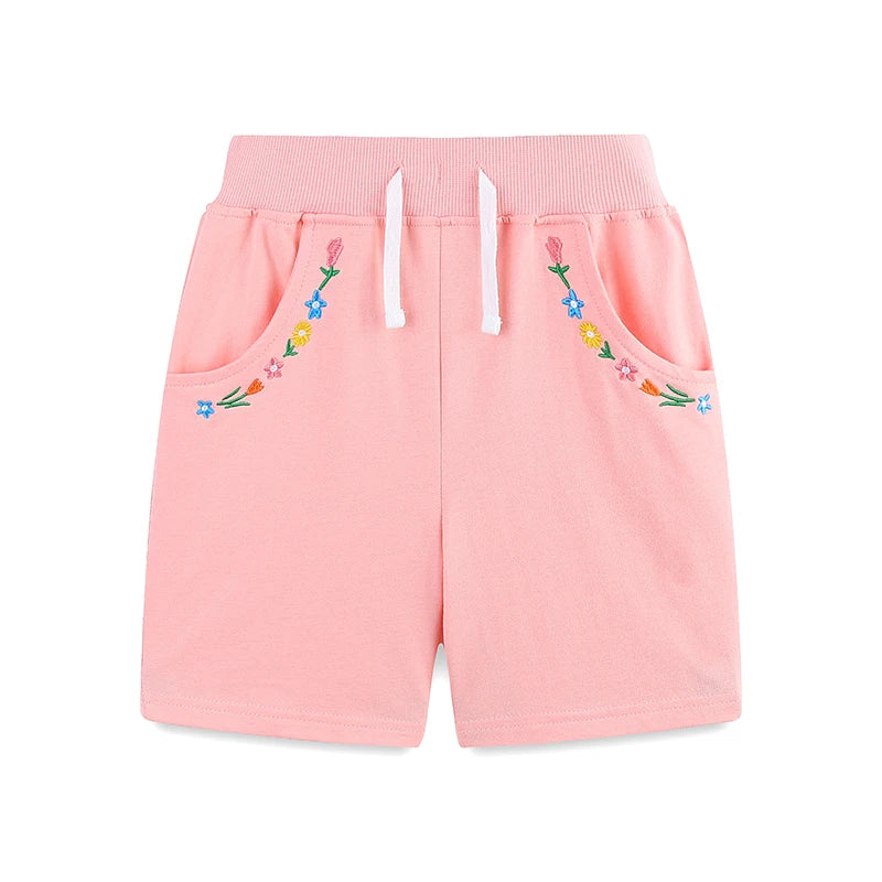 Get ready to bloom in these adorable Girls Shorts! Made with 100% cotton, these shorts are perfect for all-day comfort and play. The embroidered flowers add a fun pop of color and texture, making these shorts a must-have for any stylish little girl.