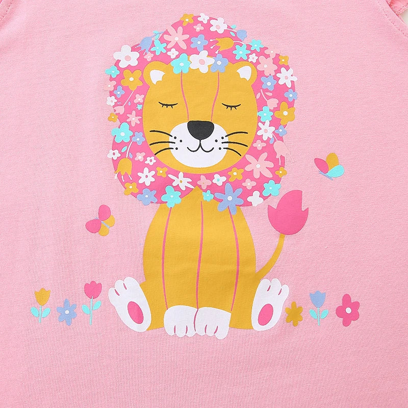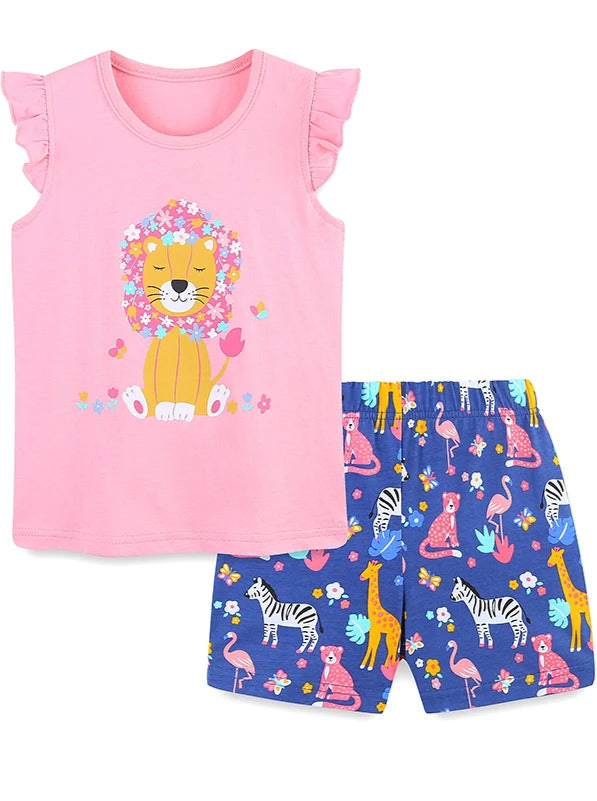 Girls Flutter Sleeve T Shirts and Shorts - Happy Lion