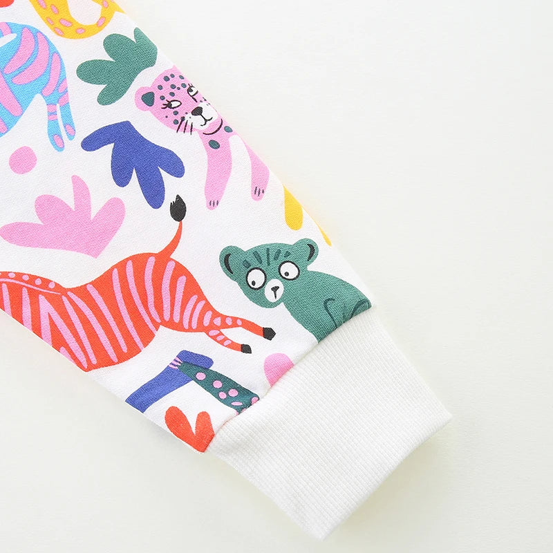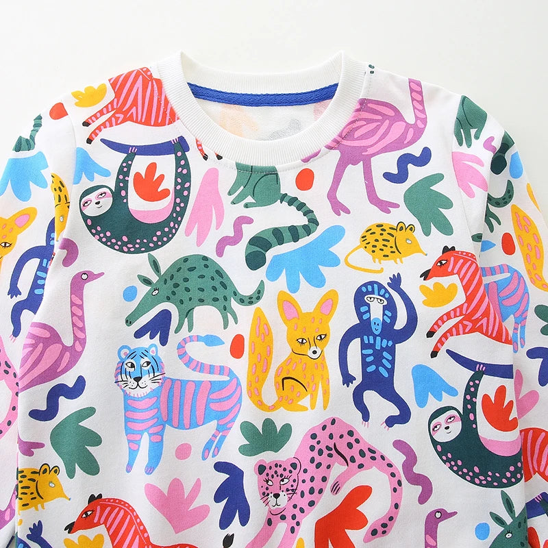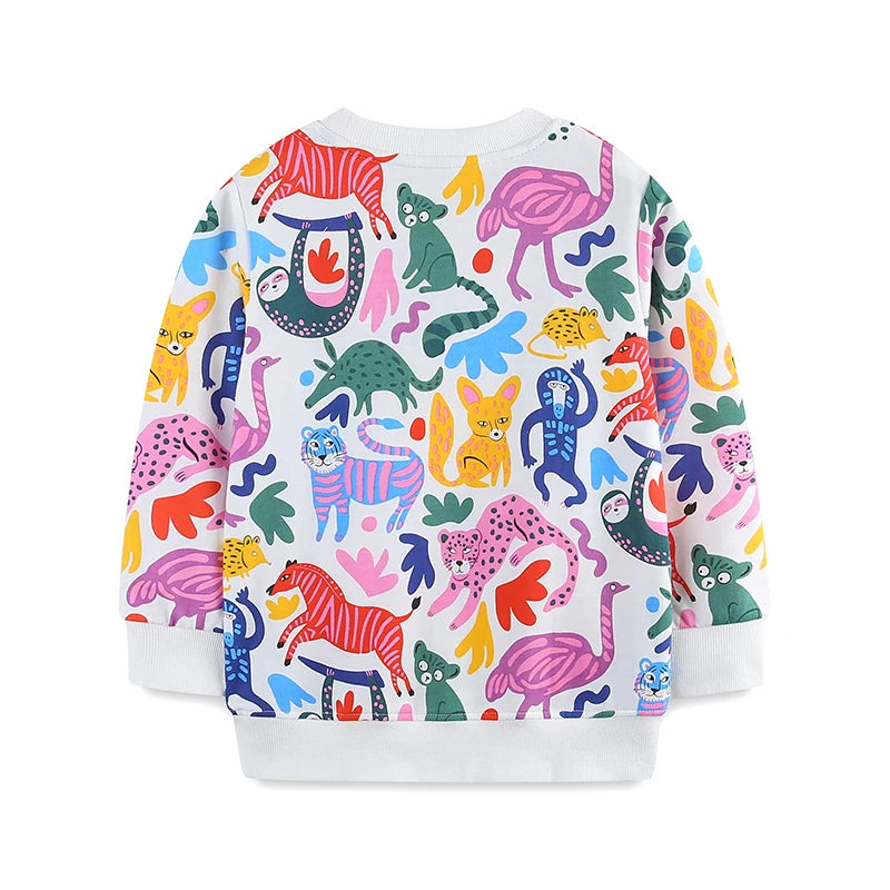 Roar into cuteness with our Sweatshirt - The Zoo! Featuring a playful zoo animal print, this sweatshirt will keep your little one warm and stylish. Made with soft and durable fabric, it's perfect for everyday wear. Add a touch of fun to any outfit with this quirky sweatshirt!